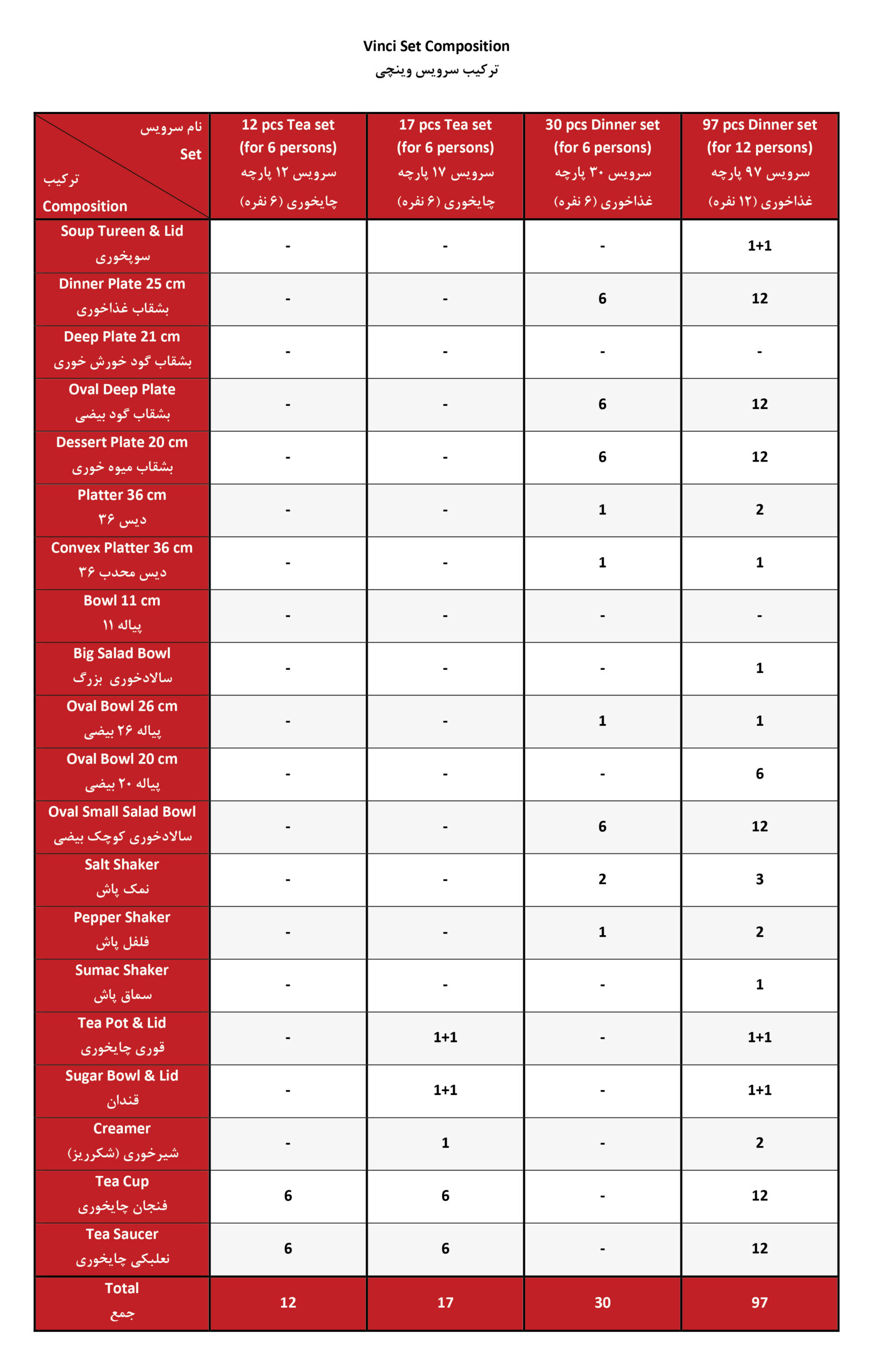 VINCCI GOLD Dinner set for 12 (97pcs)-آرایه وینچی زرین ۹۷ پارچه چینی زرین
